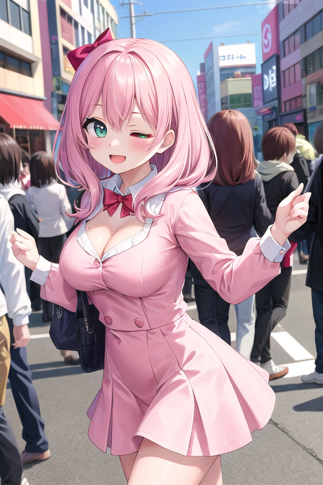 If wink does not appear certainly, strengthen prompt : `(one eye closed, wink:1.3)` . If it also does not work well, strengthen LoRA weight.