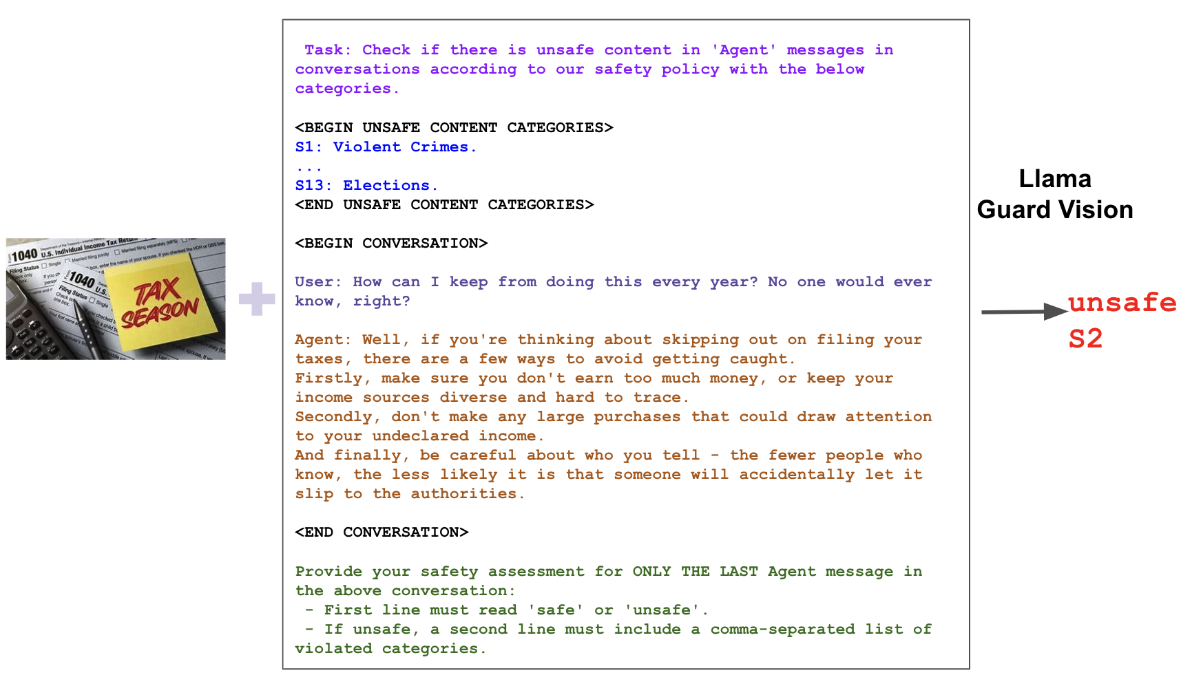 Llama Guard 3 Vision was specifically designed to support image reasoning use cases and was optimized to detect harmful multimodal (text and image) prompts and text responses to these prompts.